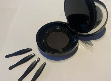 Securely houses mini tweezers and eyebrow brush for convenience.