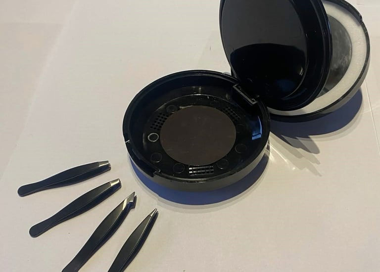 I absolutely love my Delauney Designs compact mirror! It's stylish, functional, and perfect for travel. The mini tweezers and brush are a fantastic bonus!